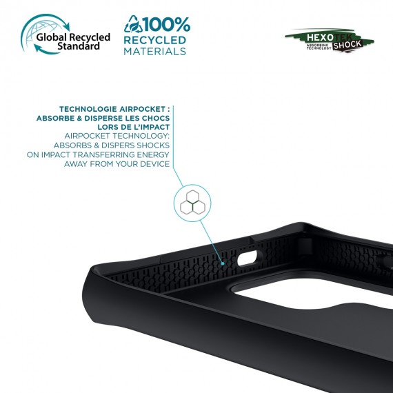 In addition, the built-in antimicrobial technology of this shell protects your Galaxy S24 Ultra by reducing the bacteria by up to 99.99%, for a healthier surface. In short, this ultra protective case offers you a double barrier of protection while keeping a very slim design, made from 100% recycled materials and 100% dedicated to your device!