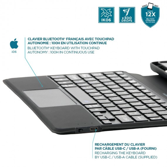 - Protective case for iPad 10.2'' with Bluetooth® keyboard + touchpad - Compatible with iPad models : A2602 / A2604 / A2270 / A2428 / A2429 / A2430 / A2197 / A2200 / A2198