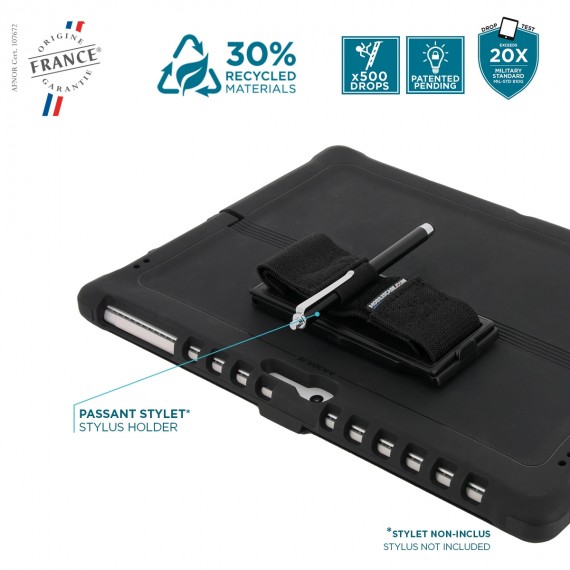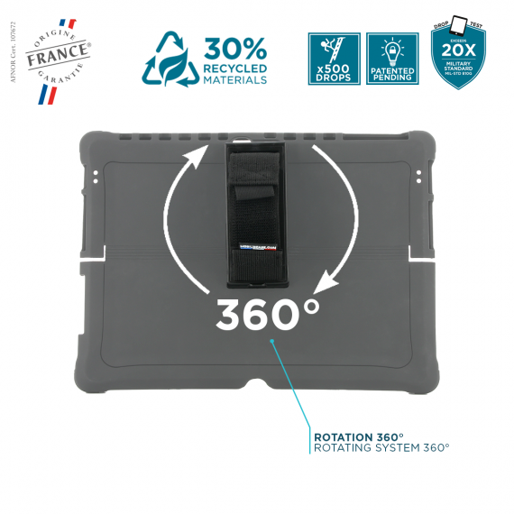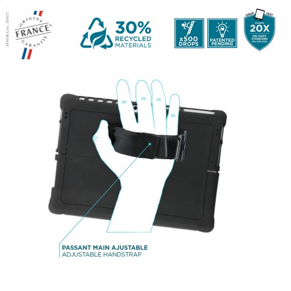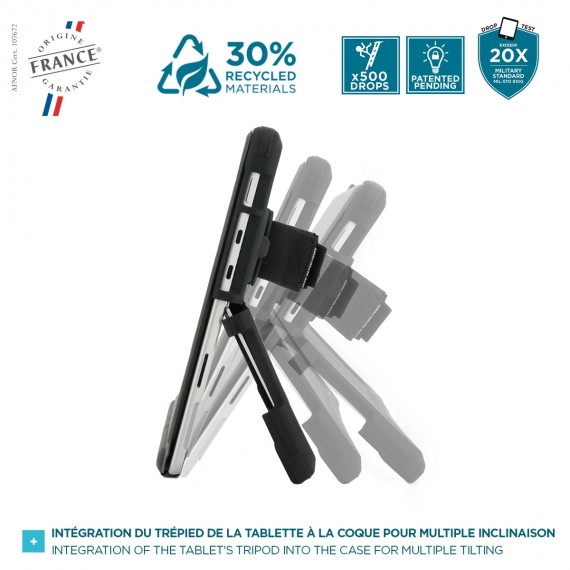 Flexible, light, ergonomic and very efficient, PROTECH cases are perfectly adjusted to the devices that they protect. Ergonomy and portability are optimized thanks to their accessories included (360 ° rotating handle, tripod, stylus holder). Users will gain efficiency and freedom of movement in the field, at the office or in a classroom.