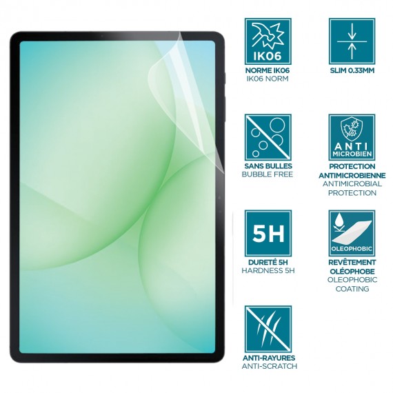 Discover the MOBILIS®-designed tablet Clear screen protector; it effectively protects the screen of your tablet Galaxy Tab A9+ 11'' (SM-X216R / SM-X210R / SM-X216 / SM-X210) against breakages, scratches, dust, etc. This screen protector is IK06 standard, has the best shockproof protection on the market, and its Clear finish retains 99% of the screen’s sharpness. It’s an easy to install, versatile and shatterproof screen protector. Thanks to its anti-bubble technology, installing your screen protector is no longer a problem. The product is also supplied with a cleaning kit, a microfibre cloth and a smoothing card to make installation as easy as possible. It also has perfect touch sensitivity. With its Clear protection, your terminal’s screen will be fully protected.