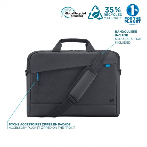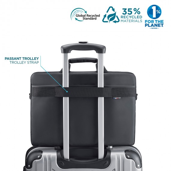 This briefcase is made from 35% recycled materials GRS certified (Global Recycled Standard). With this MOBILIS®-designed Trendy briefcase you can carry your computer equipment securely.