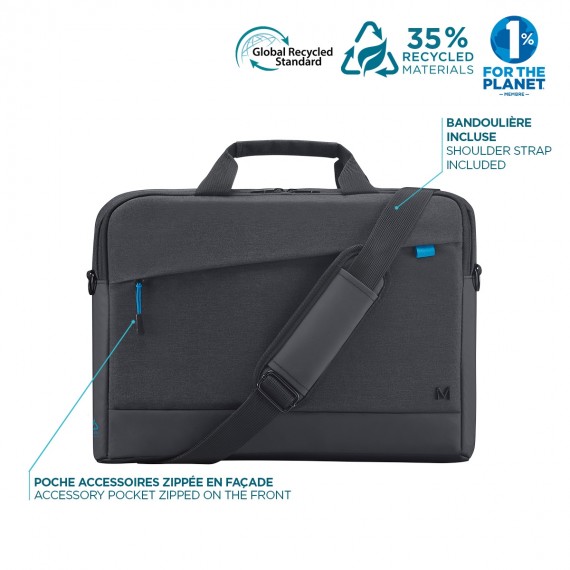 This briefcase is made from 35% recycled materials GRS certified (Global Recycled Standard). With this MOBILIS®-designed Trendy briefcase you can carry your computer equipment securely.
