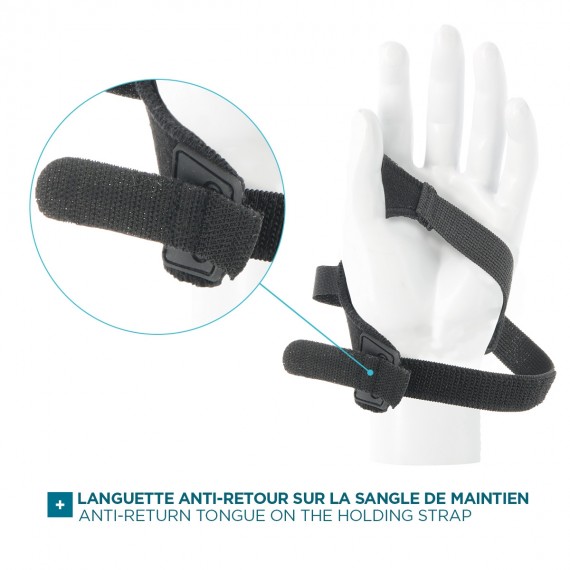 - Universal : adapts to all hand sizes: elastic velcro strap - 2 models available: right-handed (reference 001087) / left-handed (reference 001088)
