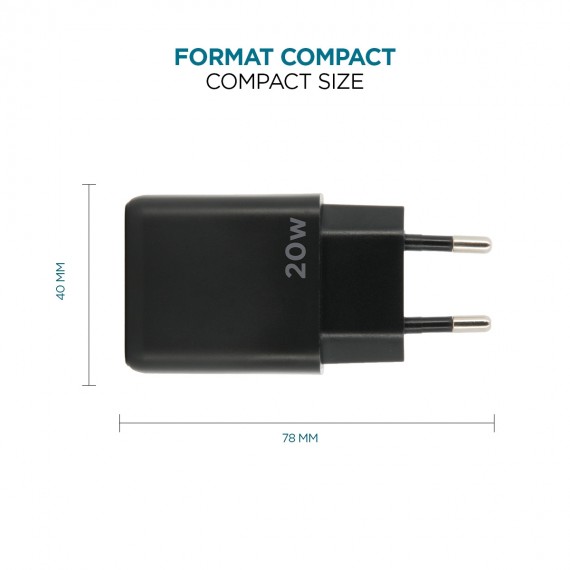 This power adapter features 1 USB-C port with a maximum power output of 20 Watts. Its compact size means you can take it with you wherever you go to recharge your smartphone or tablet. Compatible with all USB-C charging cables (cable sold separately).