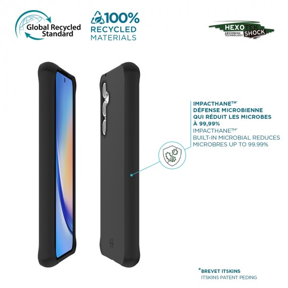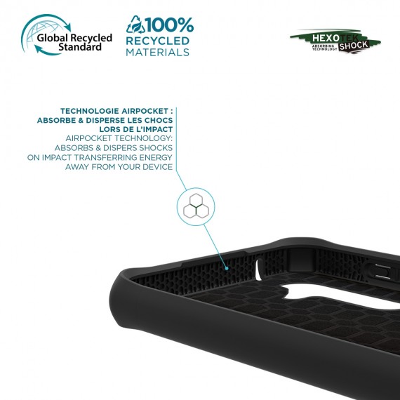 In addition, the built-in antimicrobial technology of this shell protects your Galaxy A35 5G by reducing the bacteria by up to 99.99%, for a healthier surface. In short, this ultra protective case offers you a double barrier of protection while keeping a very slim design, made from 100% recycled materials and 100% dedicated to your device!