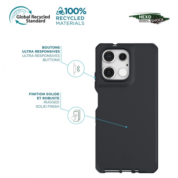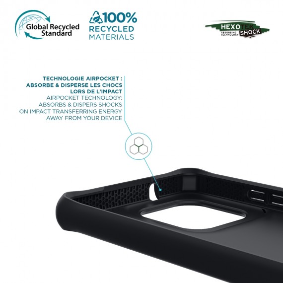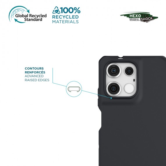 In addition, the built-in antimicrobial technology of this shell protects your Motorola Moto G75 by reducing the bacteria by up to 99.99%, for a healthier surface. In short, this ultra protective case offers you a double barrier of protection while keeping a very slim design, made from 100% recycled materials and 100% dedicated to your device!