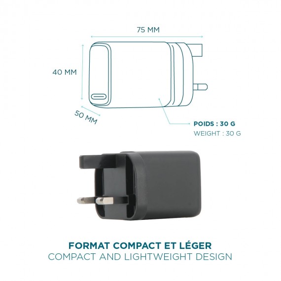 Fast Wall Charger GaN - 30W - USB-C + USB-A for Smartphone & Tablet