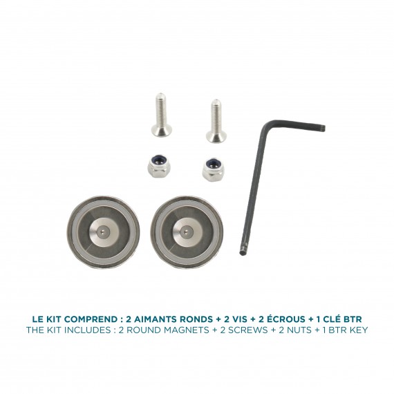 - Composition of the pack : 2 round magnets + 2 screws + 2 nuts + 1 BTR key