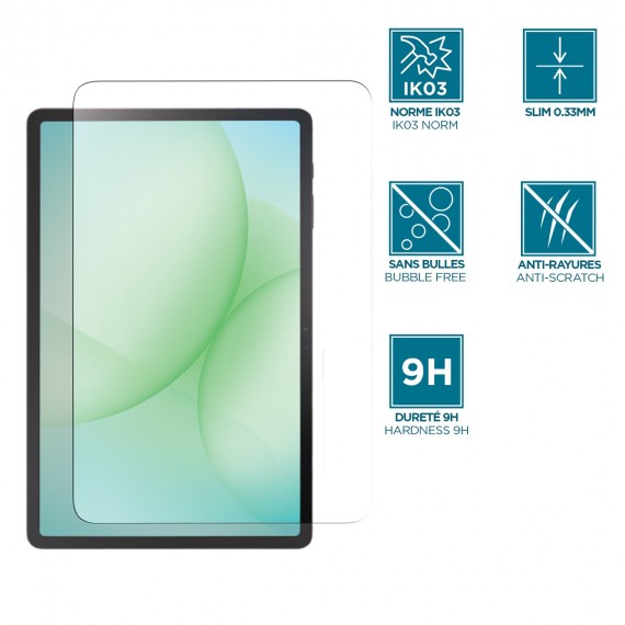 To help you protect the screen of your Galaxy Tab A11+ / Galaxy Tab A9+ 11'' against everyday impacts and scratches, MOBILIS® has designed this tempered glass screen protector.
