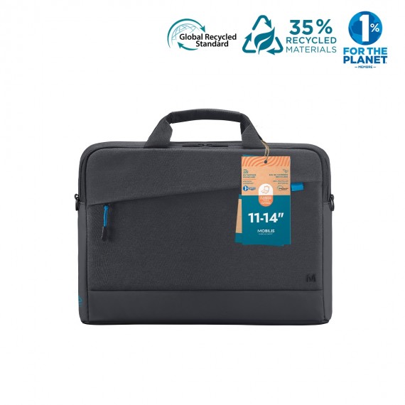 This briefcase is made from 35% recycled materials GRS certified (Global Recycled Standard). With this MOBILIS®-designed Trendy briefcase you can carry your computer equipment securely.