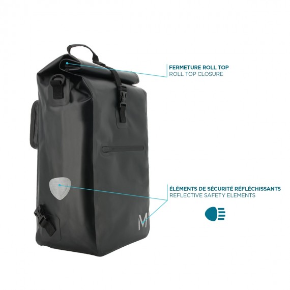 Une notice d’installation est disponible : vous pouvez scanner le QR code sur le packaging ou télécharger la fiche technique. Pour plus de sécurité et de visibilité de jour comme de nuit, ce sac est également équipé d’éléments réfléchissants sur l’avant et chaque côté. Vous pouvez utiliser votre sac à dos vélo par tous les temps, la matière extérieure en tarpaulin est étanche et très facilement nettoyable.