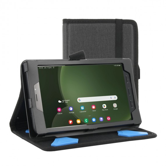 L'étui est muni d’une bandoulière, d’une patte de saisie et d’un porte-stylet. Parfait pour un usage bureautique ou semi-nomade.